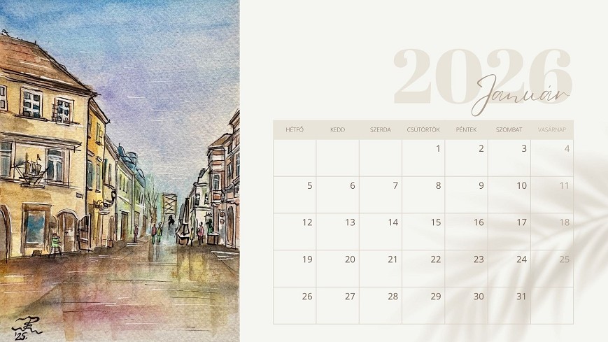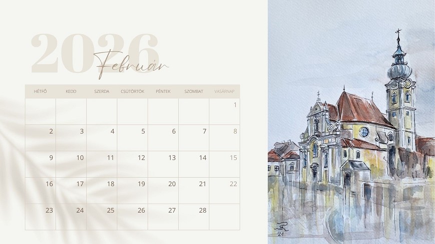 13 lapos egyedi, limitált kiadású asztali naptár saját győri akvarell festményeimmel.