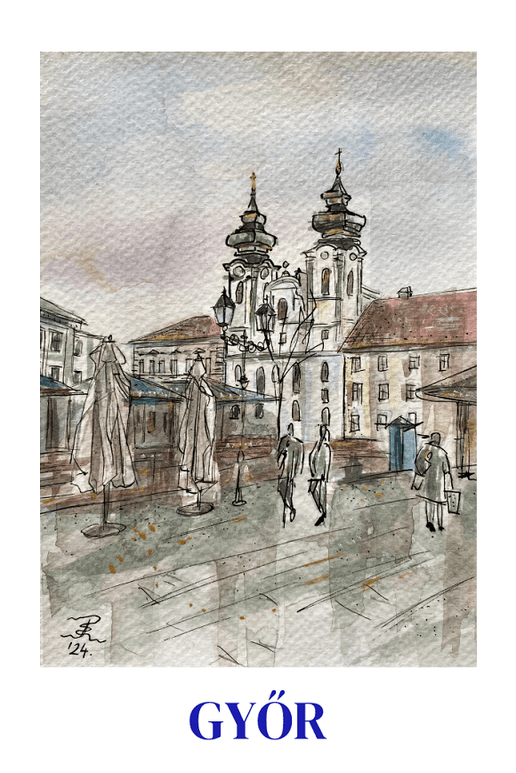 6 × 9 cm-es hűtőmágnes, saját győri akvarelljeim nyomatával.