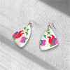 Kézzel festett, gyanta bevonatú lógós fülbevaló, mely a hagyományos magyar népi virágmotívumokat idézi meg friss, modern formában. Egyedi, enyhén szögletes csepp alakú kialakítással. Mérete kb. 4 × 2 cm. Nemesacél fémrészekkel készült, antiallergén kivitelben.