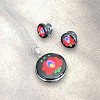 Kézzel festett, gyanta bevonatú ékszerszett, mely a hagyományos magyar népi virágmotívumok szín- és formavilágát idézi. A szett része egy 1,5 cm átmérőjű beszúrós fülbevaló és egy kerek medál (2,5 cm átmérő). Nemesacél fémrészekkel, antiallergén kivitelben.
